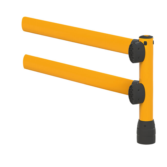 Dankzij de dikkere dwarsbalken biedt deze uitbreiding extra bescherming op voertuighoogte. De flexibele constructie absorbeert impact van heftrucks, palletwagens en andere interne transportmiddelen en keert daarna terug naar zijn oorspronkelijke vorm.
