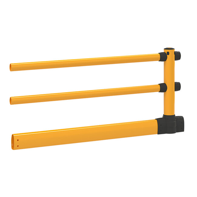 Naast de standaard beschermrail beschikt deze uitbreiding over een extra dwarsbalk op vloerniveau. Hierdoor worden niet alleen voetgangers beschermd, maar ook stellingen, machines en infrastructuur tegen schade door heftruckvorken, palletwagens en lage aanrijdingen.