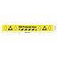 De markering is gemaakt van slijtvast PET met een sterke industriële lijmlaag, waardoor hij betrouwbaar hecht op beton, epoxyvloeren en gecoate industriële vloeren. Dankzij het antislipoppervlak (R10) en de krasbestendige print blijft de markering ook bij intensief loop- en transportverkeer goed zichtbaar.